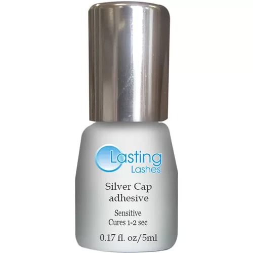 Silver Cap 5ml 1-2 Sec Ultra fast drying formula, cures in 1-2 seconds, medium fumes, suitable for sensitive eyes, safe for lens wearers. After completing the lash application the client must keep their eyes closed for 5-10 min for fumes to settle. Professional use only. Directions: Apply lash primer to the eyelashes before applying the lash adhesive. Gently sweep the tip of the classic or volume lash through the glue ensuring to only pick up a small amount.